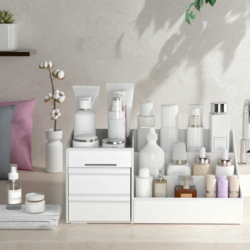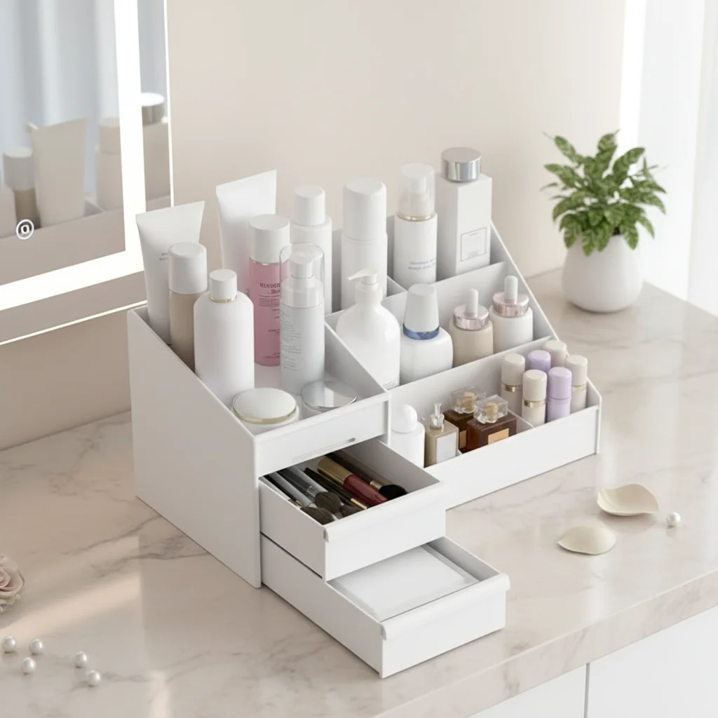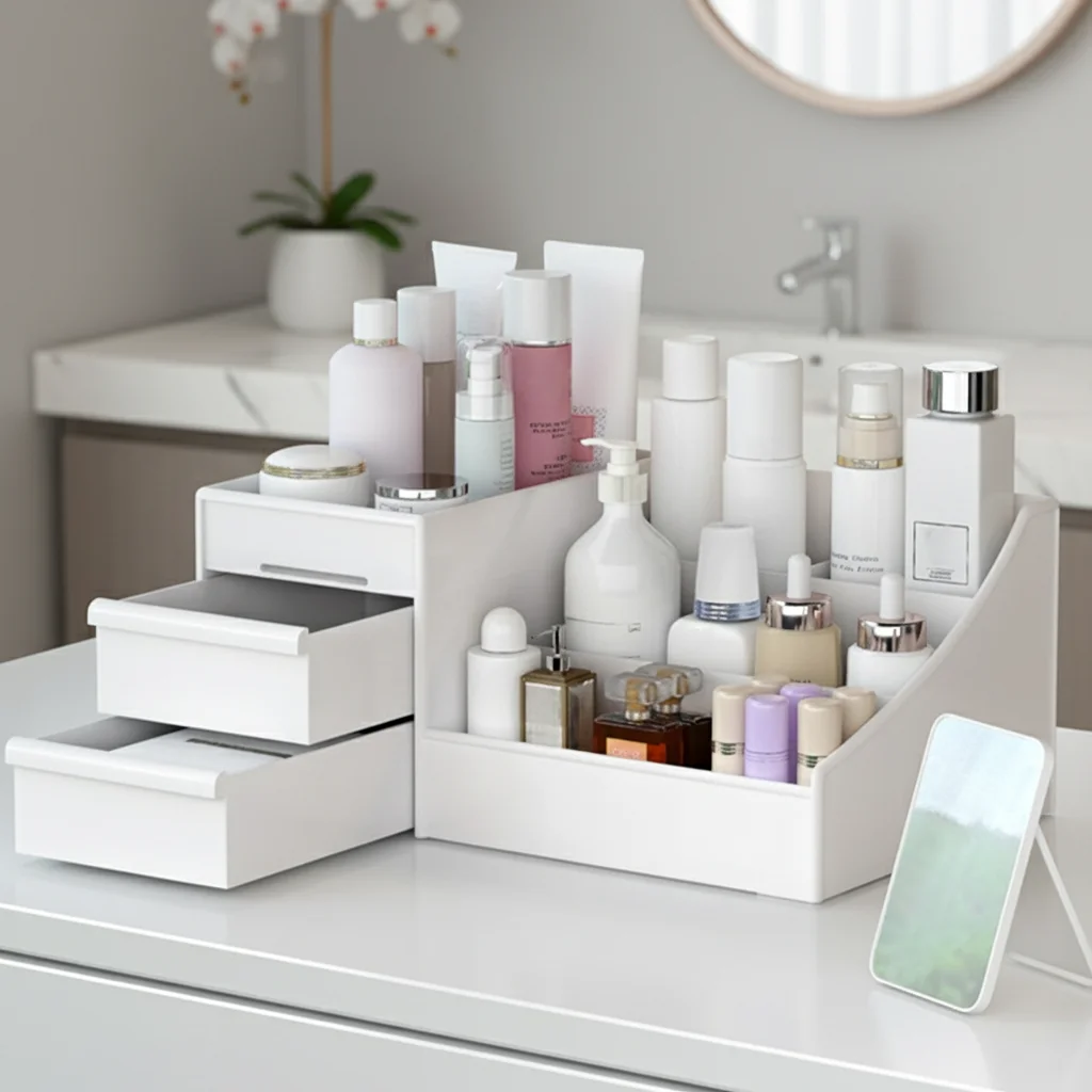 • Versatile Makeup Storage :This white drawer makeup storage box is perfect for organizing your cosmetics and skin care products. It’s ideal for dormitory use or any small space.